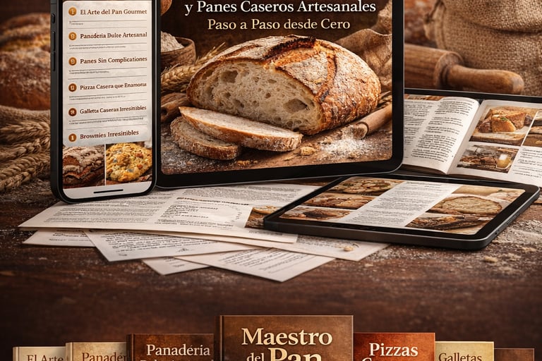 Un completo Ebook con recetas de masa madre, panes caseros y artesanales, explicadas paso a paso para que cualquier persona pueda hacerlo, incluyendo bonos exclusivos.